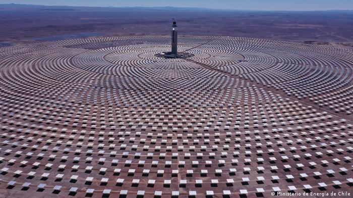 El ministro de Energía de Chile detalló que “La planta utiliza 10.600 espejos, cada uno de 140 metros cuadrados de superficie, en un terreno de más de 700 hectáreas, que reflejan la luz del sol, concentrando el calor en un receptor ubicado en lo alto de la torre principal, a 250 metros”
