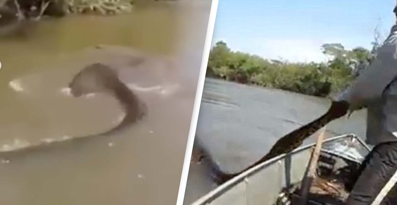 Quedó bastante claro que el grupo estaba tratando con una enorme anaconda cuya sección media estaba hinchada con algo grande, probablemente un carpincho, acababa de alimentarse. A pesar de esto, los pescadores continuaron acosando a la serpiente agarrándola por la cola y arrojándola de vuelta al medio del río, no una sino dos veces. Tal comportamiento podría haber sido desastroso para el bienestar de la anaconda, ya que podría haber regurgitado su comida debido a sentirse amenazada.