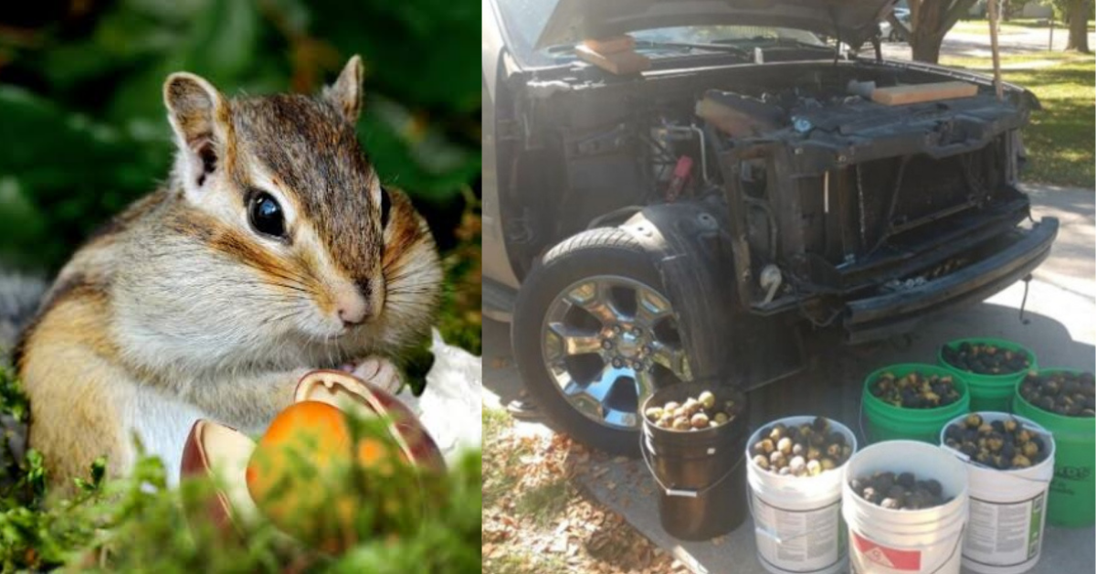 En pocas horas, un grupo de ardillas escondió aproximadamente 100 kilogramos de nueces en un automóvil.