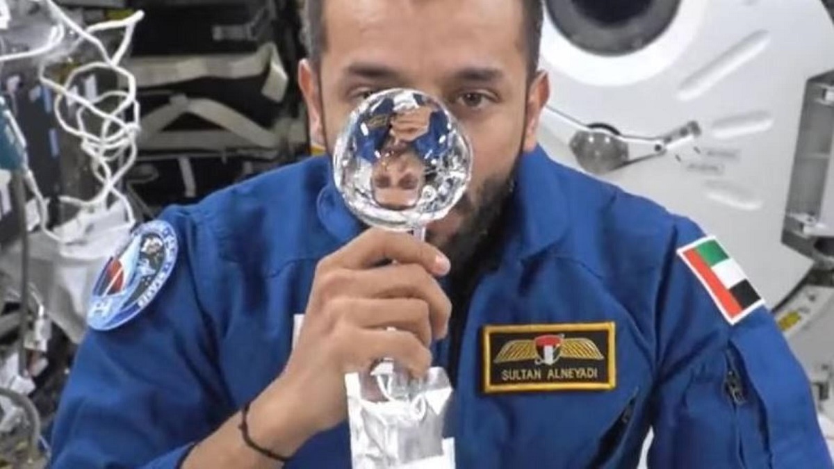El astronauta emiratí compartió un video notable que muestra cómo el preciado líquido toma forma en un entorno de gravedad cero.