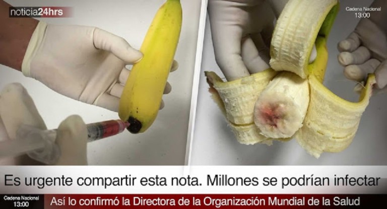 Por otro lado, si removemos la palabra “infectar” de la búsqueda. Esto arroja resultados de diferentes redes fidedignas que describen que las bananas podrían curar sida.