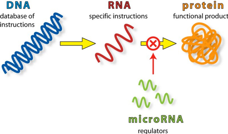 Los microARN presentes en todos los organismos vivos que antes se consideraba “ARN basura” regulan la expresión de al menos la mitad de todos los genes humanos. Estos ARN de una sola hebra ejercen su acción reguladora mediante la unión de ARN mensajeros y traducción en proteínas.