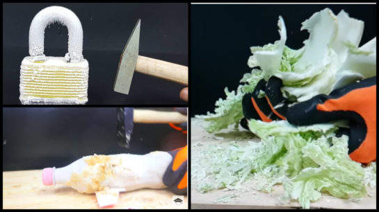 Divertidos videos en los que emplean nitrógeno líquido para congelar y posteriormente destruir cosas.