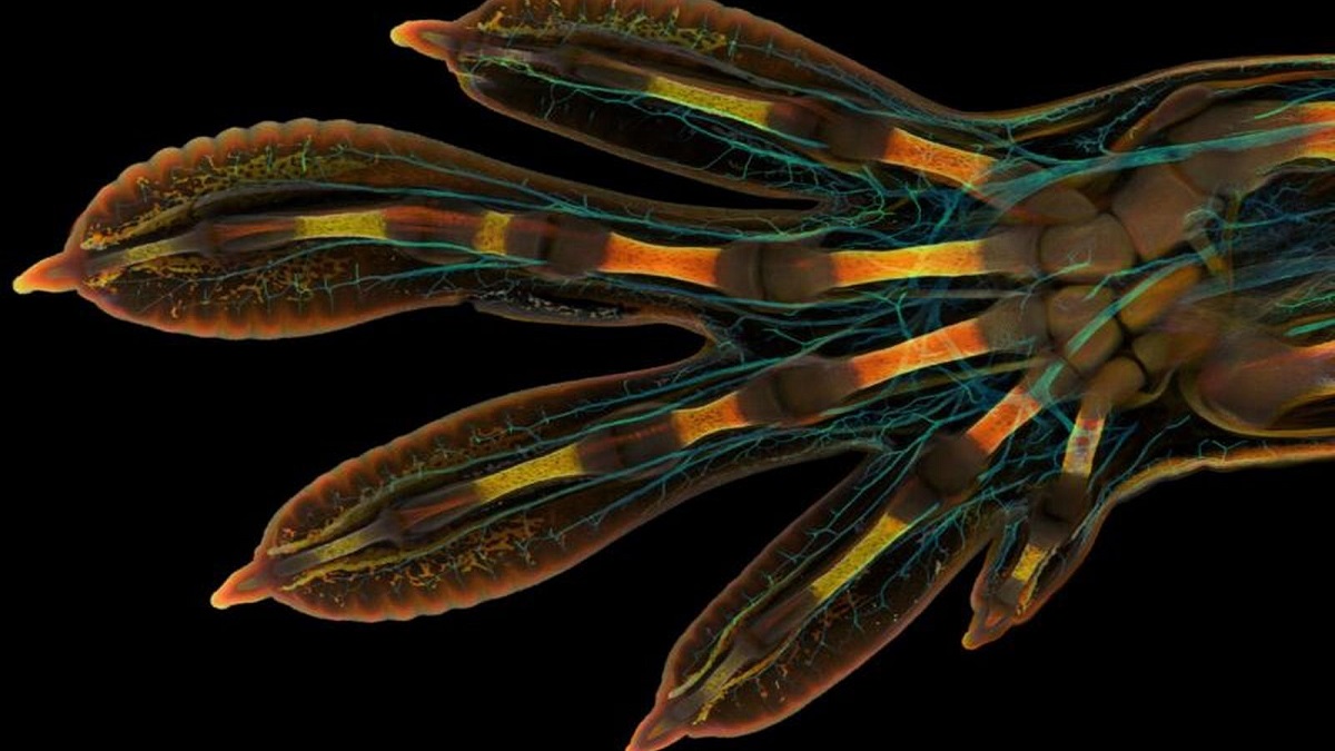 Ahora tenemos una perspectiva única del apéndice más famoso del gecko: una impactante imagen de microscopía de una mano embrionaria de Phelsuma grandis, cortesía de un estudiante graduado suizo, Grigorii Timin, en la Universidad de Ginebra y su asesor, Michael Milinkovitch. Es la imagen ganadora del Concurso de fotomicrografía Nikon Small World 2022, diseñado para resaltar «imágenes asombrosas de científicos, artistas y microfotografos de todas las experiencias y procedencias de todo el mundo», según el gerente de comunicaciones de Nikon, Eric Flem.