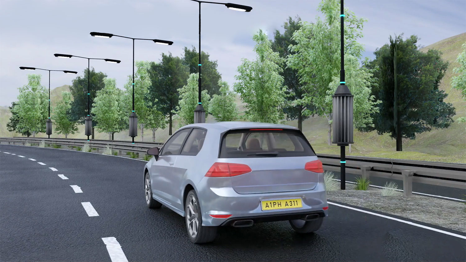 El empresario Barry Thompson, con sede en Kent, y su empresa Alpha 311 han desarrollado un nuevo tipo de turbinas eólicas que están unidas a columnas de iluminación existentes cerca de las carreteras y funcionan con energía masiva sin explotar producida por vehículos en movimiento.