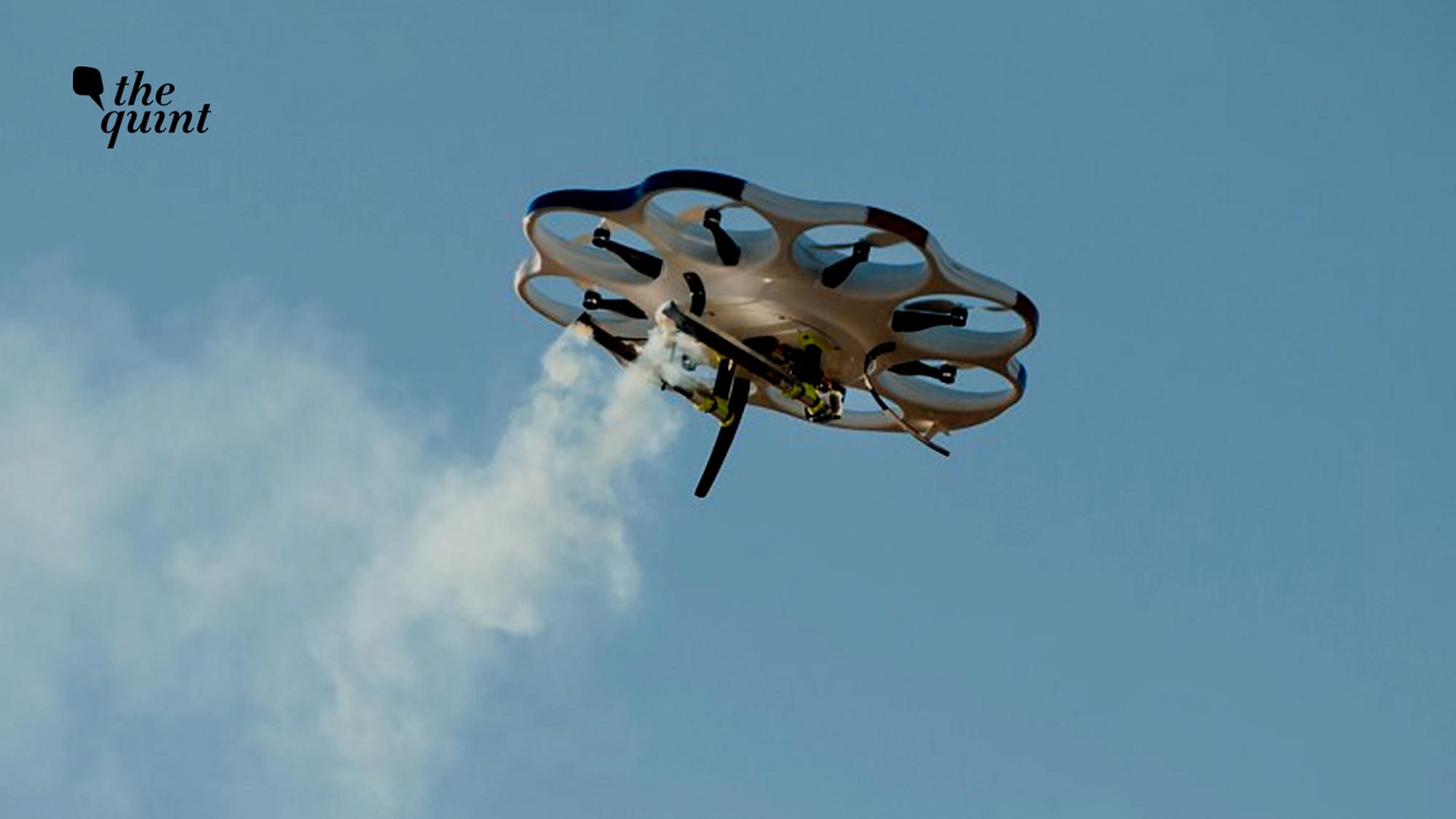 El humo blanco que emana de este dron no denota que esté sufriendo problemas sino que ha activado dos bengalas que dispersan en el aire un cargamento químico que promueve la condensación de la humedad del aire en partículas conocidas como núcleos de condensación.