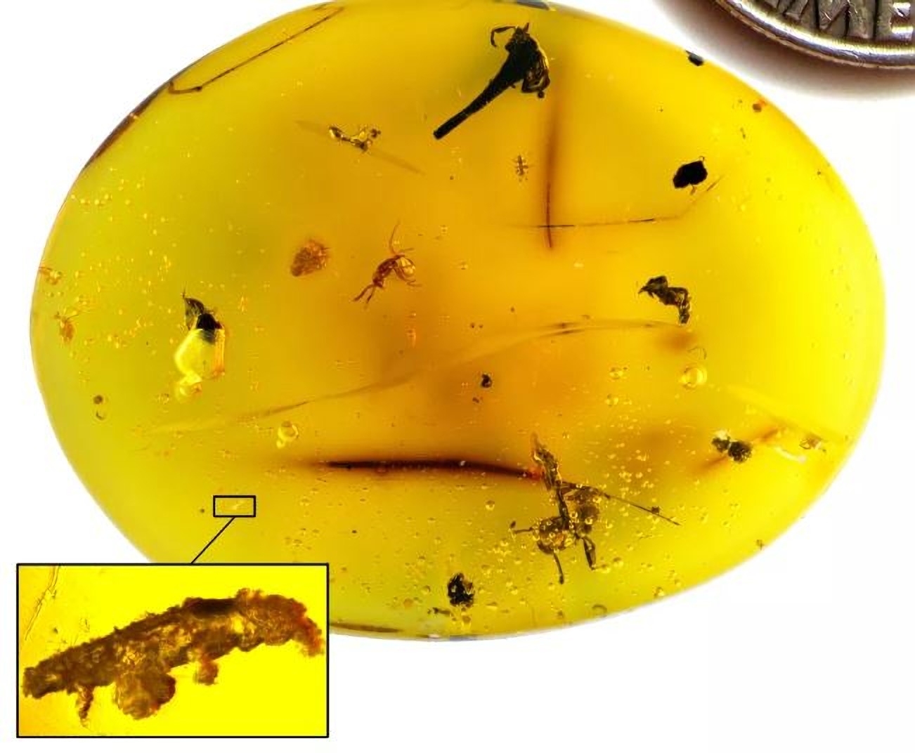 Pero en algún momento, un miembro del laboratorio notó una forma achaparrada, parecida a una oruga, con pequeñas patas con garras que sobresalían de su parte inferior. Habían encontrado un tardígrado flotando en el ámbar, junto a tres hormigas, un escarabajo y una flor.