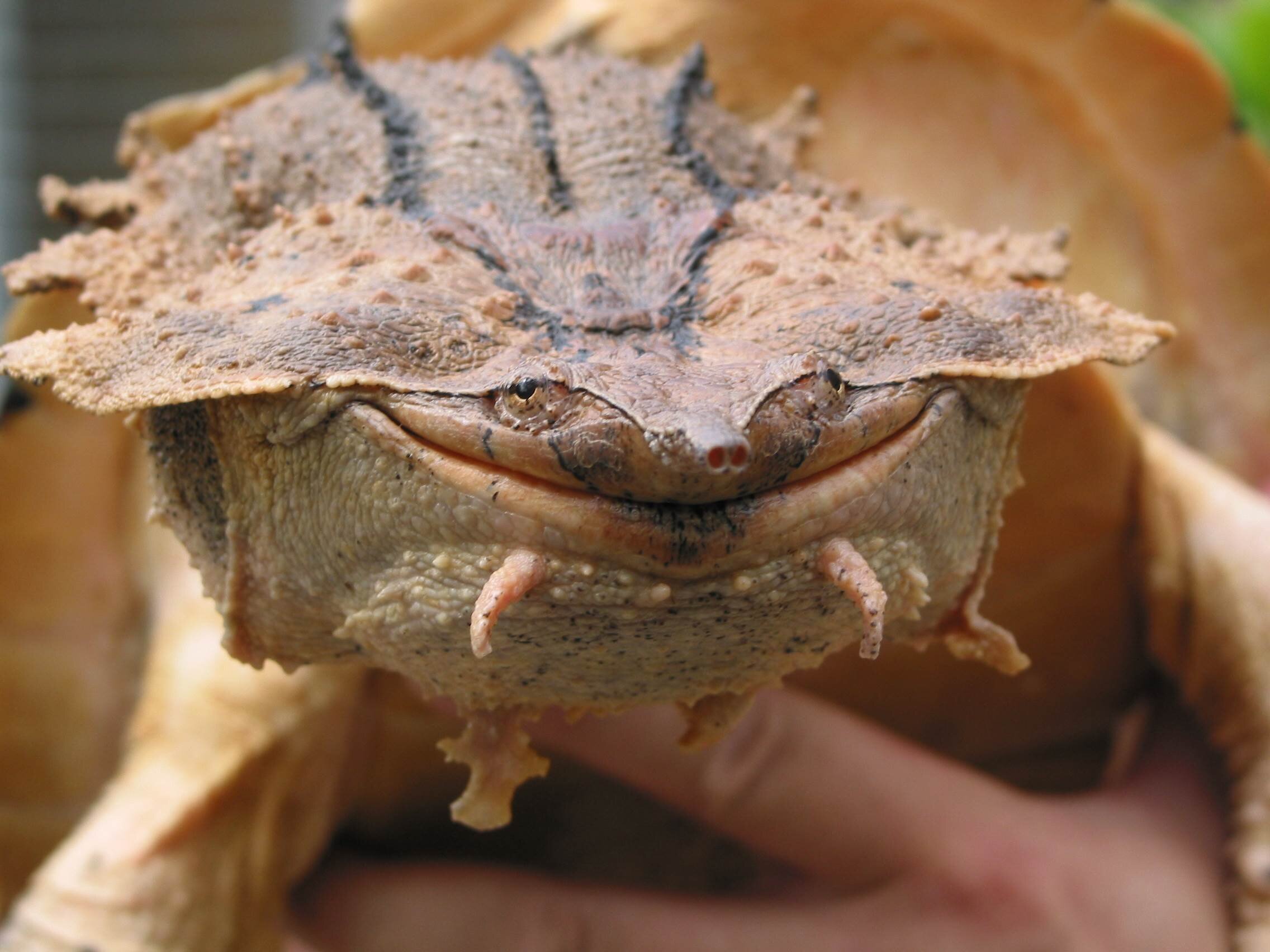 Estas particulares tortugas son distintas a las especies más conocidas en todo el mundo, cuentan con más de 50 centímetros de largo, su peculiar apariencia se debe a que se esconden en el lodo debajo del agua y parecen rocas cubiertas de algas, tienen una boca que les permite succionar a cualquier presa que se encuentre cerca de ellas.