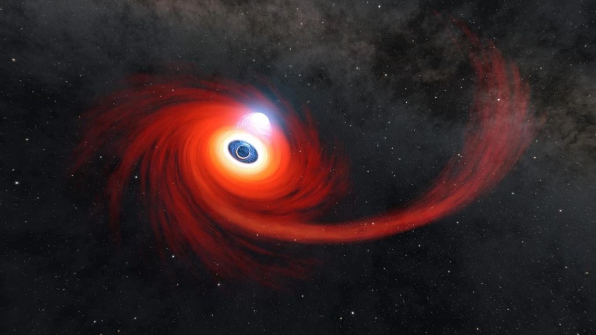 La impresionante ilustración muestra el proceso de cómo el agujero negro desmanteló la estrella a través de un proceso conocido formalmente como evento de interrupción de marea, según un comunicado de prensa.