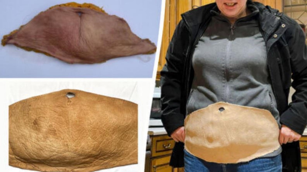 No, esta no es la trama de una película de suspenso o de terror. Una mujer que se sometió a una cirugía para perder peso en realidad convirtió su propio exceso de piel en un trofeo de cuero. La artista Katie Taylor pudo hacer cuero humano usando solo su congelador y una secadora.