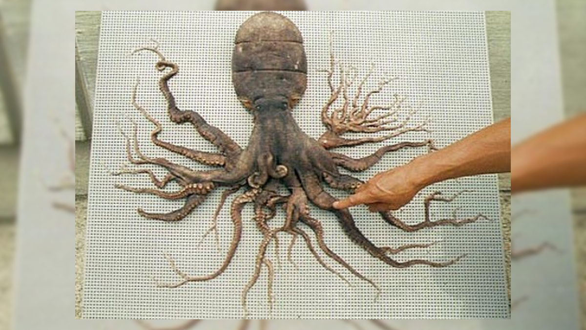 Pero en la exhibición permanente en el acuario Shima Marineland en la ciudad de Shima tuvieron un pulpo (Octopus vulgaris) con 96 tentáculos que pesaba 3.3 kilogramos y medía 90 centímetros de largo.