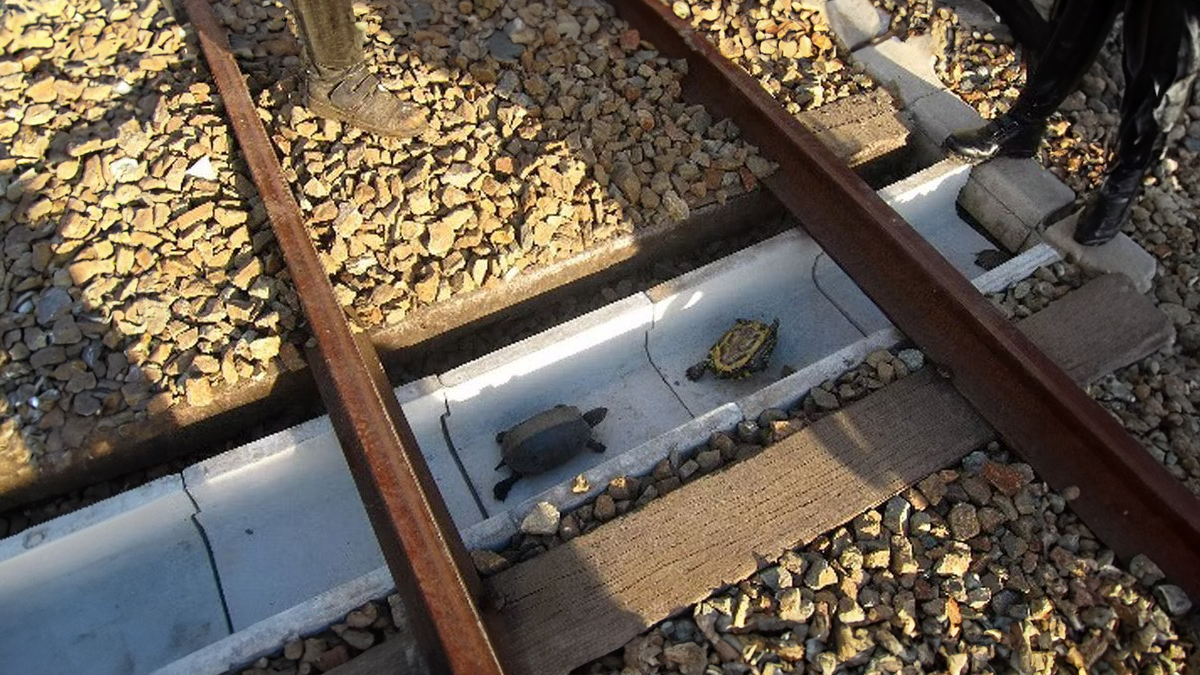 A pesar de que cierta caricatura sobre tortugas armadas con nunchakus podría hacernos creer, que son muy poderosas, en Japón, necesitaban ser rescatadas debido a su lamentable hábito de quedar atrapadas entre los interruptores de las vías del tren mientras intentaban cruzar las vías.