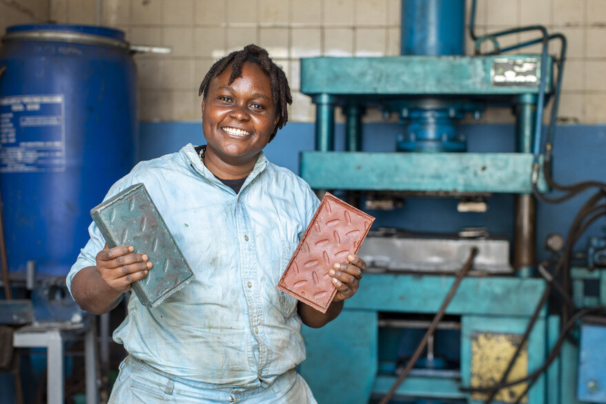 La startup «Gjenge Makers» con sede en Nairobi , fundada por Nzambi Matee, ha creado un material de construcción liviano y de bajo costo que está hecho de plástico reciclado con arena para hacer ladrillos que son más fuertes que el material de concreto.