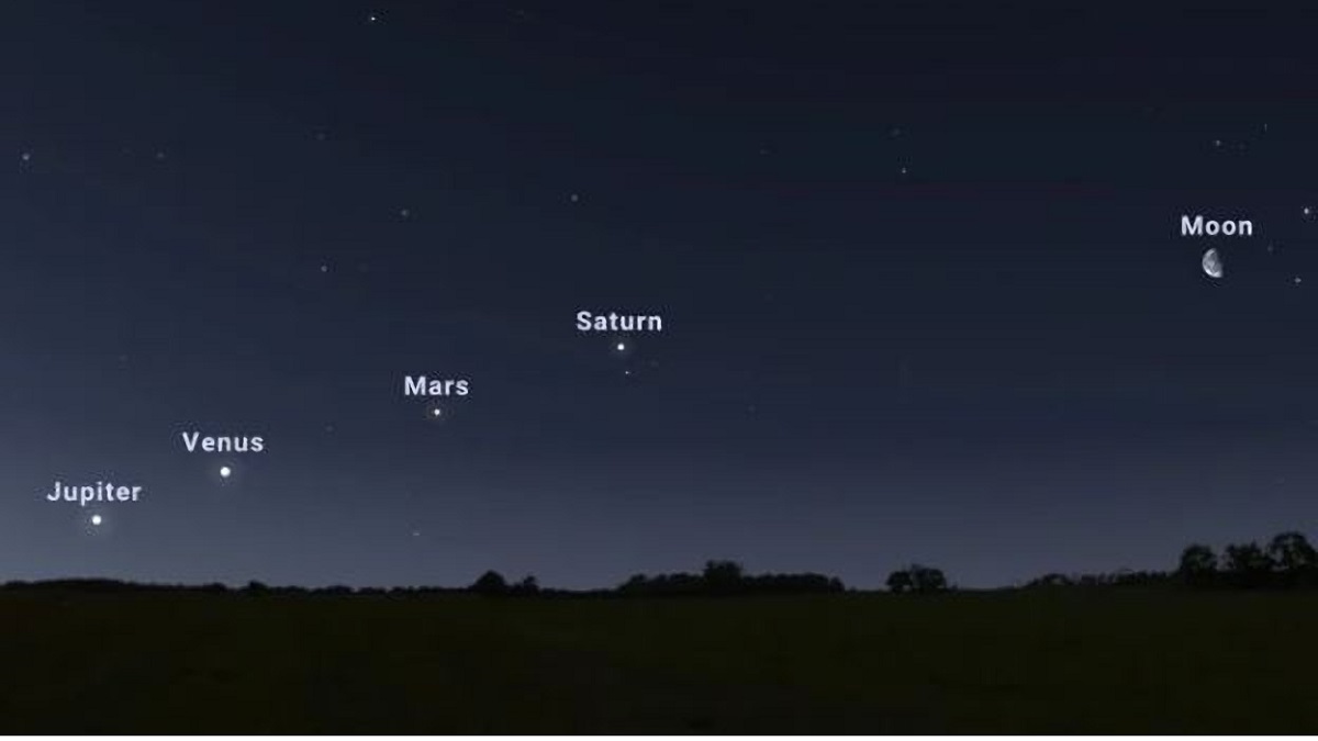 Saturno, Marte y Venus se han estado agrupando desde fines de marzo, pero no será hasta mediados de abril que Júpiter se unirá al asombroso suceso.