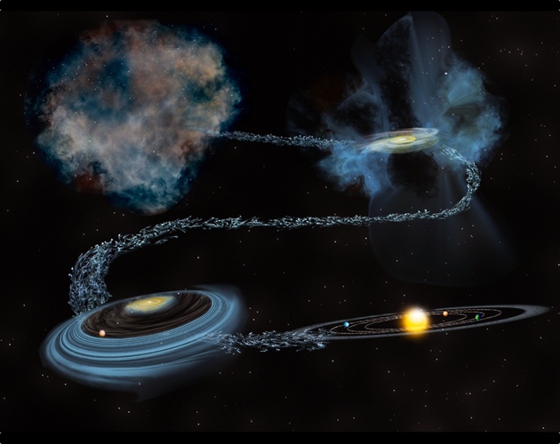 El hielo no es lo único que hay en el espacio interestelar – también hay material orgánico, dice Fred Ciesla, un científico planetario de la Universidad de Chicago. Si este material interestelar entró en la formación de los planetas de nuestro sistema solar, entonces probablemente forma parte de planetas alrededor de otras estrellas también por lo que las posibilidades de otros planetas formados con las condiciones idóneas para la vida aumentan mucho.