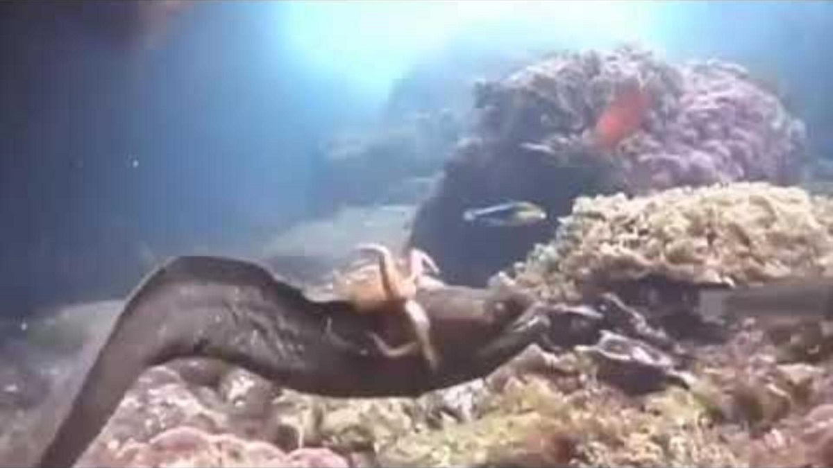 Video: Mira a un pulpo montar una anguila para evitar ser comido