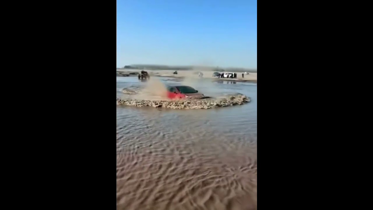 Propietario de un Tesla Model 3 color rojo, decidió llevar su vehículo fuera de la carretera y prácticamente sumergirlo en el agua de la playa. En las orillas el agua parece tener poca profundidad pero conforme atraviesa llega hasta el capó del vehículo sin tener problema alguno.