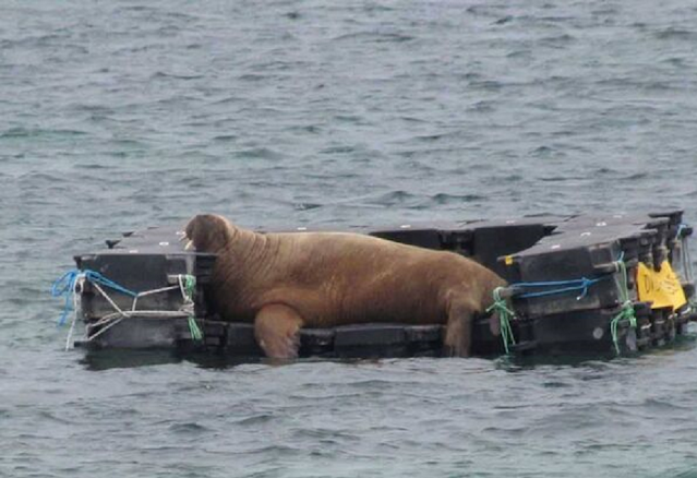 Le obsequian un ‘sofá flotante’ a “Wally” la morsa, para evitar que siga hundiendo embarcaciones.