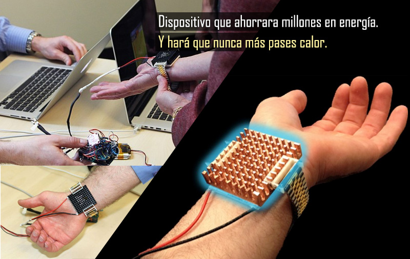 Esta es una Pulsera termoeléctrica que engaña a tu cuerpo para no sentir calor. Uno de los grandes inventos del siglo el cual ahorrara millones en energia ya que no se necesitaran climas en los edificios corporativos, solo una pulsera que regule la temperatura.