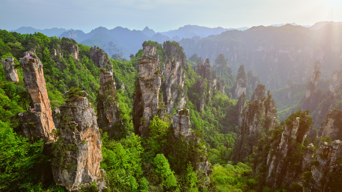 - El parque nacional de Zhangjiajie, donde se encuentran las montañas, es el primer parque nacional forestal de China. Cuenta con una flora y fauna únicas, incluyendo especies raras de animales como el ciervo almizclero chino y el lagarto cocodrilo chino.